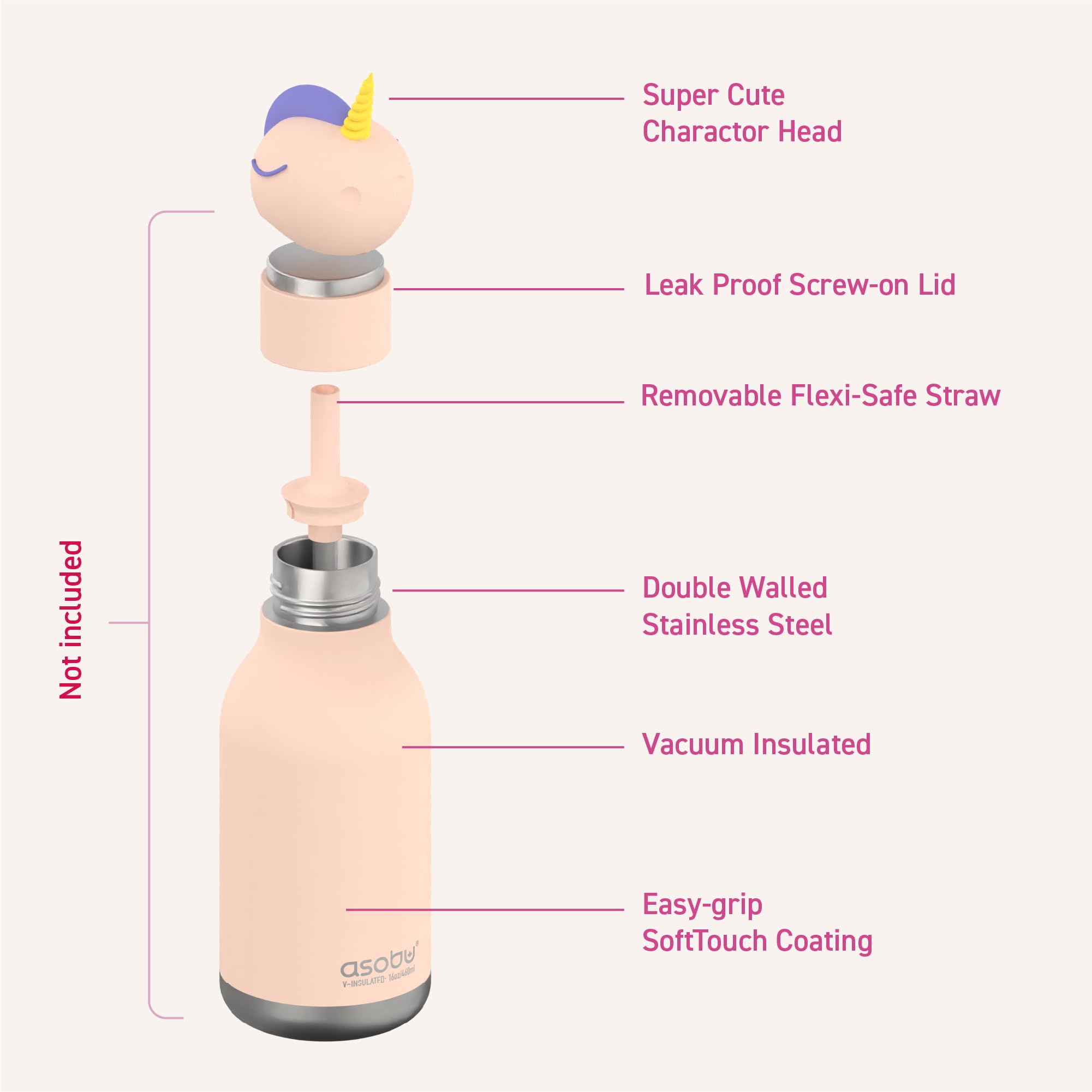 asobu Bestie Bottle Replacement Head For Insulated Stainless Steel Water Bottle, Detachable Soft Animal Head, Collectable Bottle Head for Fun Drinking For Kids, Unicorn