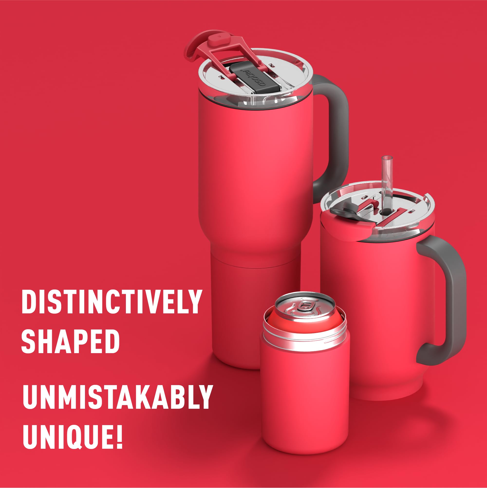 asobu DUPLEX 2-in-1 Travel Mug and Beer Can Holder Enjoy hot and cold drinks simultaneously -22 oz Hot Coffee or Tea Tumbler with Attached 12 oz Cold Can Holder for Beer or Soda, Red