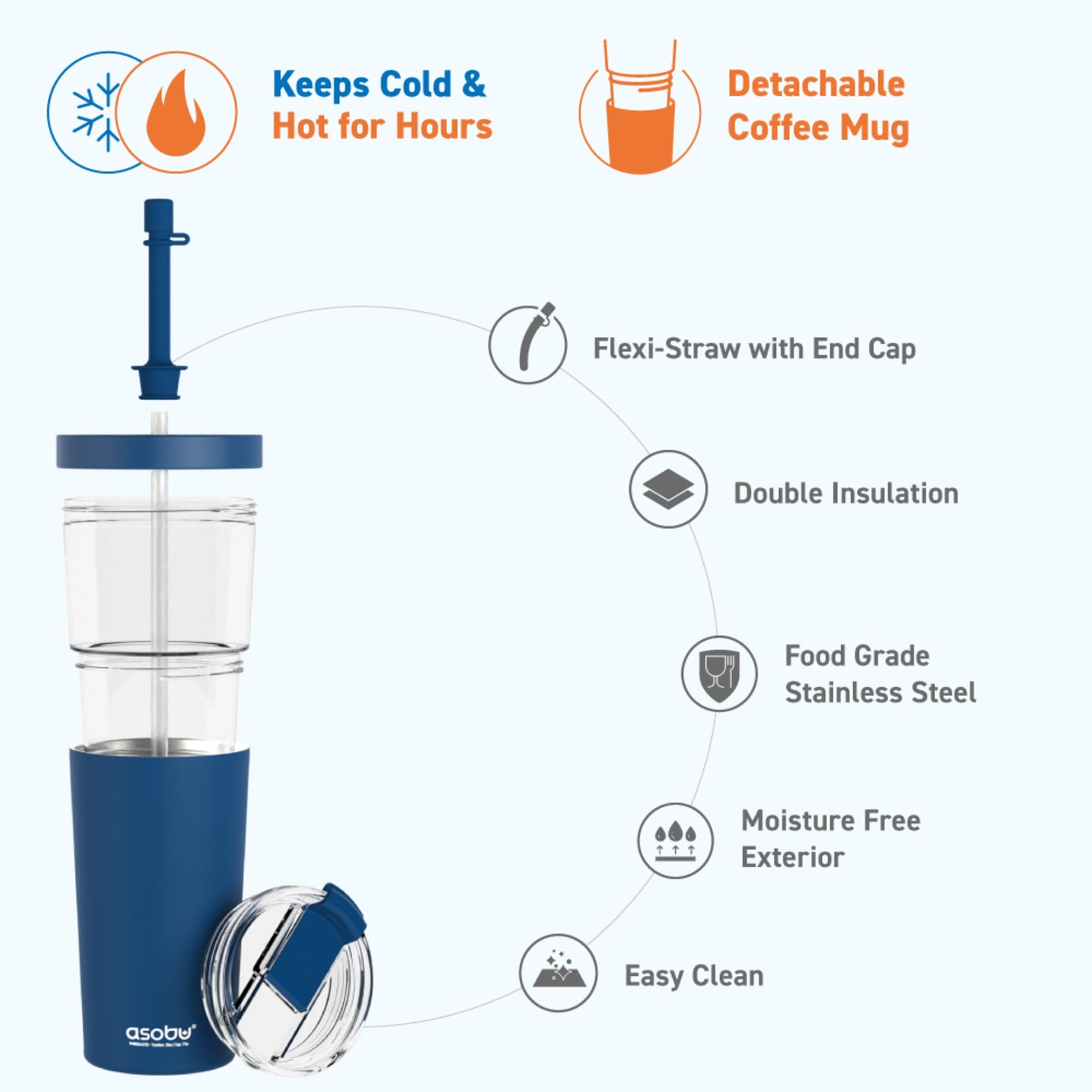 asobu Marina See-Through Triton Tumbler with Flexible Straw, 28 oz., Blue (ICT400)