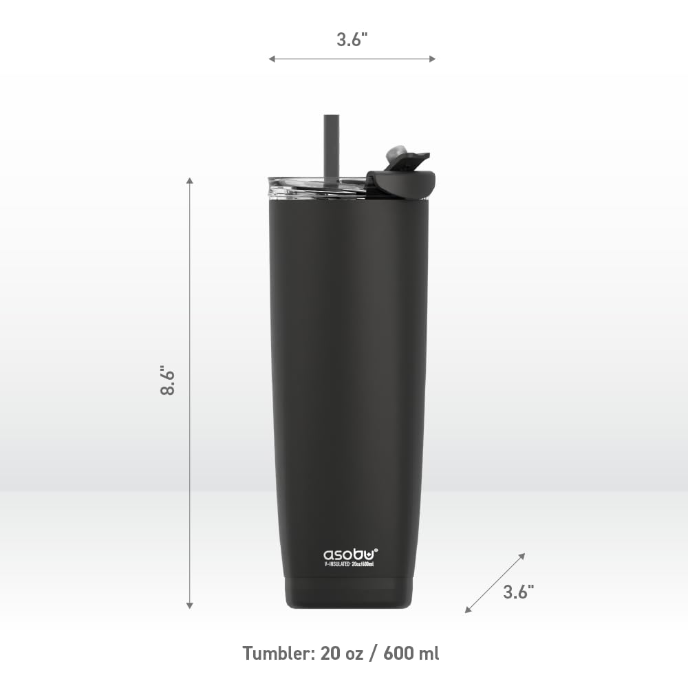 asobu Puramic Aqualina - with Interchangeable Hot and Cold Lid and Built in Straw, 20 Ounce (Black)